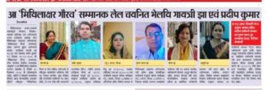 आ ‘मिथिलाक्षर गौरव’ सम्मानक लेल चयनित भेलथि गायत्री झा एवं प्रदीप कुमार