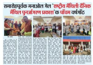 समारोहपूर्वक मनाओल गेल ‘राष्ट्रीय मैथिली दैनिक मैथिल पुनर्जागरण प्रकाश’क पाँचम वर्षगाँठ