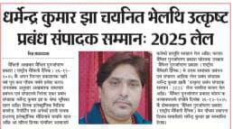 धर्मेन्द्र कुमार झा चयनित भेलथि उत्कृष्ट प्रबंध संपादक सम्मान : २०२५ लेल