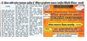 मैथिली अखबार ‘मैथिल पुनर्जागरण प्रकाश (राष्ट्रीय मैथिली दैनिक)’ केर पाँचम वर्षमे प्रवेश पर सभगोटेकेँ हार्दिक शुभकामना एवं अभिनंदन।