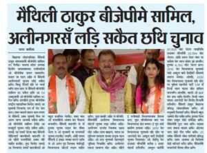 किछु दिनसँ एहि पर चर्चा चलि रहल छल जे मैथिली बीजेपीमे सामिल भऽ सकैत छथि आ १४ अक्टूबरकेँ ओ बीजेपीमे सामिल भऽ गेल छथि।