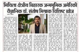 मिथिला क्षेत्रीय बिहारक जन्मभूमिक अमेरिकी वैज्ञानिक डाॅ. संतोष मिश्राक विशिष्ट खोज