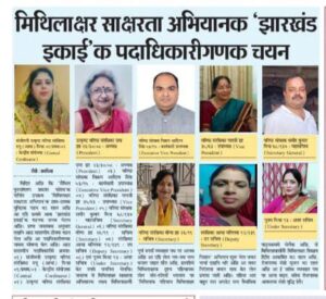 मिथिलाक्षर साक्षरता अभियानक ‘झारखंड इकाई’क पदाधिकारीगणक चयन