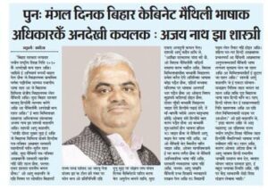 पुनः मंगल दिनक बिहार केबिनेट मैथिली भाषाक अधिकारकेँ अनदेखी कयलक : अजय नाथ झा शास्त्री