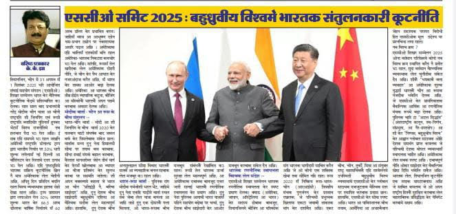 तियानजिन, चीन में 31 अगस्त सँ 1 सितंबर 2025 धरि आयोजित शंघाई सहयोग संगठन (एससीओ) शिखर सम्मेलन भारत केर वैश्विक कूटनीतिक केंद्रमे प्रतिस्थापित कऽ देलक। सात साल बाद प्रधानमंत्री नरेंद्र मोदीक चीन यात्रा आ चीनी राष्ट्रपति शी जिनपिंग एवं रूसी राष्ट्रपति व्लादिमीर पुतिनसँ हुनकर भेंटसँ विश्व राजनीतिमे नब हलचल पैदा भऽ गेल अछि। ई सब एहि समयमे भऽ रहल जखनि अमेरिकी राष्ट्रपति डोनाल्ड ट्रम्प द्वारा भारतीय निर्यात पर 50% भारी शुल्क लगेलासँ नई दिल्ली आ वॉशिंगटन केर रिश्तामे दरार उत्पन्न भऽ गेल अछि। एहि पृष्ठभूमिमे भारतक सक्रिय कूटनीतिक खेल नै मात्र अमेरिकाक लेल चेतौनी अछि, अपितु दिन प्रतिदिन बदलि रहल विश्व व्यवस्थाक झलक सेहो देखा रहल अछि।