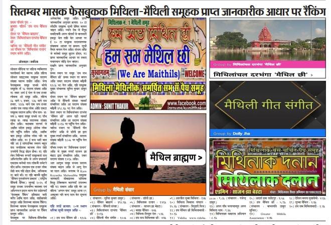 सितम्बर मासक फेसबुकक मिथिला-मैथिली समूहक प्राप्त जानकारीक आधार पर रैंकिंग